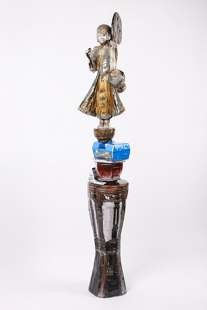 2018 나무에 프린트, 바니시, 철, 우레탄, 금박 700 x 550 x 780 (h) cm