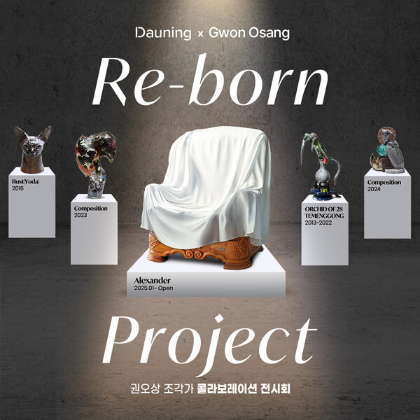 프리미엄 소파 브랜드 다우닝은 조각가 권오상과의 콜라보레이션 전시회 "Re-born 프로젝트"를 1월 23일부터 3월 3일까지 더 다우닝 라운지 판교 3층에서 진행한다고 밝혔다.